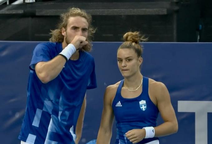 Έτσι, στο pronews.gr γράψαμε το πρωί της Δευτέρας πως οι δύο τενίστες αγωνίζονται με μια μπλε εμφάνιση η οποία φέρει μόνο το σήμα του χορηγού που τους ντύνει και δεν έχει πουθενά το εθνόσημο.