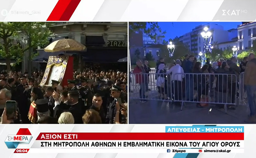Φτάνει στην Αθήνα η εικόνα «Άξιον Εστί». Επίσημη τελετή υποδοχής το απόγευμα.Αναχώρησε για την Αθήνα, νωρίς το μεσημέρι της Τετάρτης, η Ιερά Εικόνα της Παναγίας «Άξιον Εστί» του Αγίου Όρους, με ειδική πτήση της Aegean. Η πτήση φτάνει στον Διεθνή Αερολιμένα Αθηνών, «Ελ. Βενιζέλος» γύρω στις 13:50, όπου θα την υποδεχθεί σε ειδική τελετή ο Μητροπολίτης Μεσογαίας και Λαυρεωτικής, Νικόλαος, κατά κόσμον Νικόλαος Χατζηνικολάου. Η Ιερά Εικόνα συνοδεύεται από τριακονταμελή αντιπροσωπεία της Ιεράς Κοινότητας του Αγίου Όρους. Πριν την έναρξη της διαδικασίας μεταφοράς της εικόνας από την μοναστική πολιτεία, τελέστηκε Θεία Λειτουργία ενώ στη συνέχεια, τα μέλη της αντιπροσωπείας που τη συνοδεύουν, επιβιβάστηκ