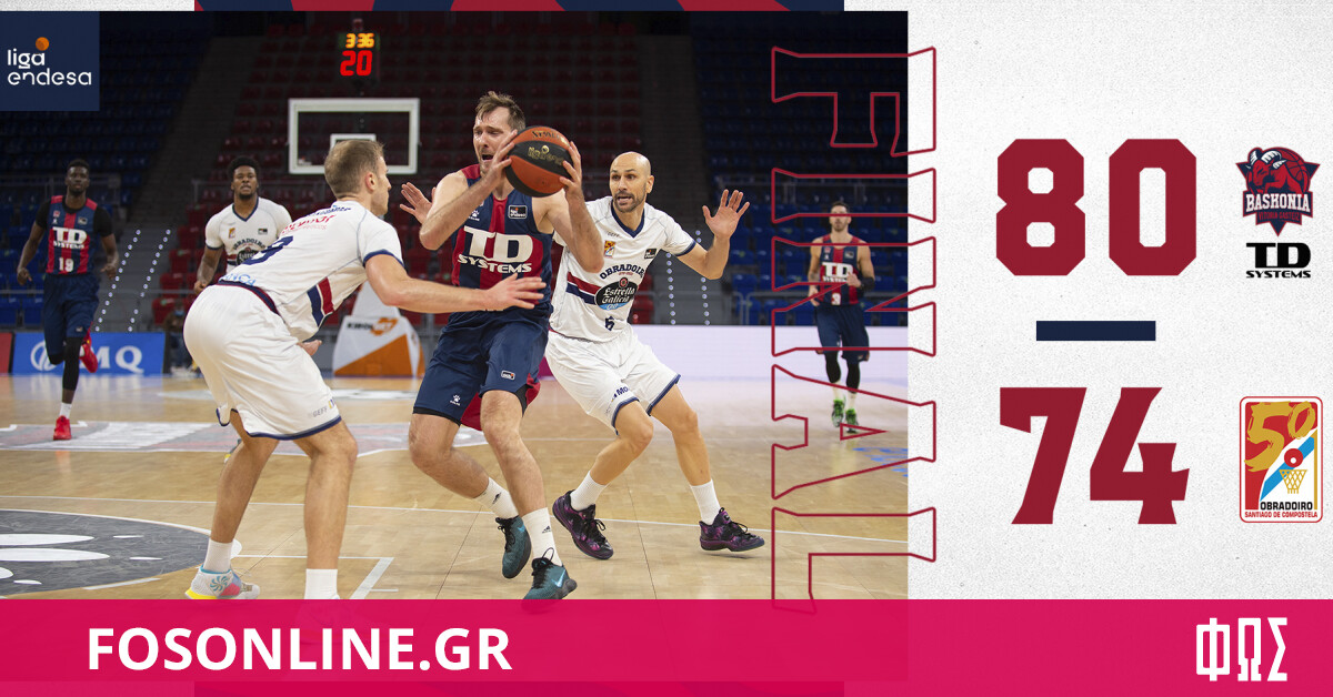 Τα χρειάστηκε η Μπασκόνια πριν τον Παναθηναϊκό ΟΠΑΠ 15/11/2020 Τις 4 σερί νίκες και συνολικά 1.000 στην ιστορία της στο ισπανικό πρωτάθλημα έφτασε η Μπασκόνια, επικρατώντας δύσκολα εντός έδρας με 80-74 της Ομπραντόιρο. Ανέβηκε έτσι στο 8-3. Κορυφαίος από το σύνολο του Ιβάνοβιτς, το οποίο στην προσεχή «διαβολοβδομάδα» θα αντιμετωπίσει και τον Παναθηναϊκό ΟΠΑΠ (19/11, 21:30), ήταν ο Βιλντόζα με 19 πόντους και τον ακολούθησε ο Πολονάρα με 11 πόντους. Από τους ηττημένους, που έπεσαν στο 5-5, ξεχώρισε ο Κοέν με 17 πόντους και 10 ριμπάουντ, ενώ 15 πόντους είχε ο Ρόμπερτσον. Τα δεκάλεπτα: 17-15, 34-36, 62-55, 80-74.