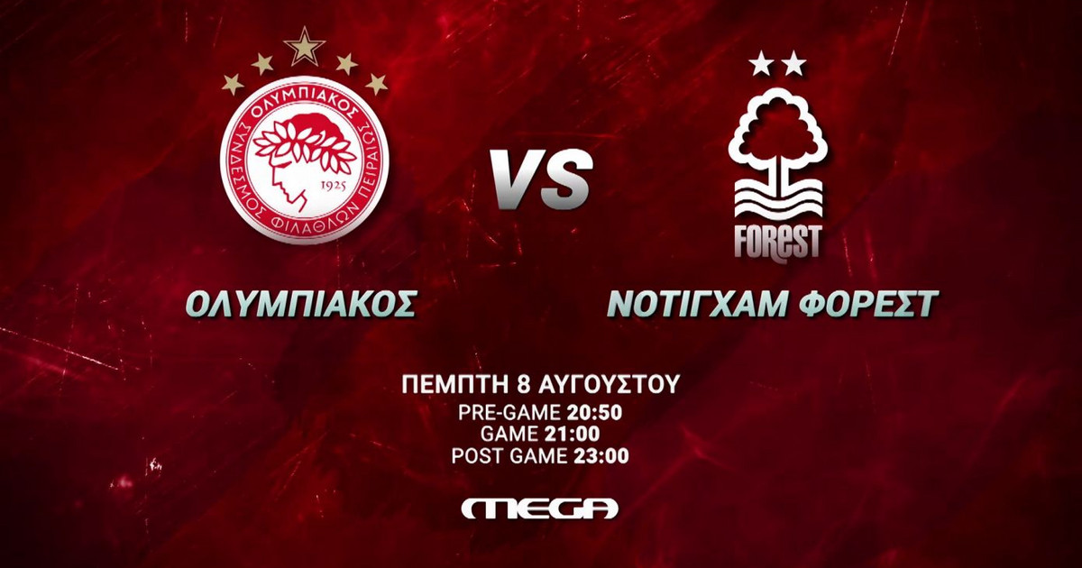 Στο Mega ο φιλικός αγώνας Ολυμπιακού – Νότιγχαμ Φόρεστ, την Πέμπτη 8 Αυγούστου στις 21:00