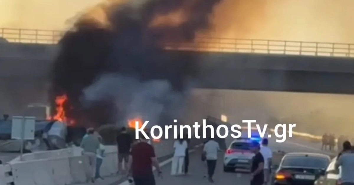Πατρών - Κορίνθου: Νταλίκα που μετέφερε καυσόξυλα τυλίχθηκε στις φλόγες
