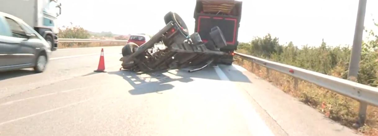 Σοβαρό τροχαίο σημειώθηκε λίγα λεπτά μετά τα μεσάνυχτα, στην Εθνική Οδό Πατρών - Κορίνθου, στο ρεύμα προς Κόρινθο, κοντά στη Λυκοποριά, όταν νταλίκα που μετέφερε ξύλα, υπό αδιευκρίνιστες συνθήκες, εξετράπη της πορείας της και κατέληξε στο διαχωριστικό διάζωμα.