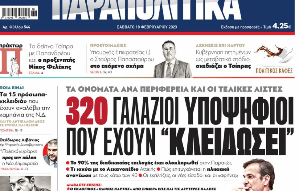 Στις 3,9 ποσοστιαίες μονάδες διαμορφώνεται η διαφορά της Νέας Δημοκρατίας με τον ΣΥΡΙΖΑ στην πρώτη δημοσκόπηση της GPO μετά την τραγωδία των Τεμπών, τα αποτελέσματα της οποίας δημοσιεύονται στην εφημερίδα Παραπολιτικά. Στην πρόθεση ψήφου, η ΝΔ συγκεντρώνει 29,5%, ο ΣΥΡΙΖΑ 25,6%, το ΠΑΣΟΚ-ΚΙΝΑΛ 9,2%, το ΚΚΕ 6,7%, το ΜέΡΑ25 3,3%, η Ελληνική Λύση 3%, οι Έλληνες για την Πατρίδα 1,4%, η Εθνική Δημιουργία 1,4%, το άλλο κόμμα 3,6%, ενώ η αδιευκρίνιστη ψήφος βρίσκεται στο 16,3%. Αναλυτικότερα, το κυβερνών κόμμα καταγράφει απώλειες 4,3%, με το κόμμα της αξιωματικής αντιπολίτευσης να χάνει ποσοστό κάτω του 1%. Ειδικότερα, η ΝΔ κατέγραφε ποσοστό 33,8% τον Φεβρουάριο και 33,3% τον Ιανουάριο. Ο ΣΥΡΙΖΑ