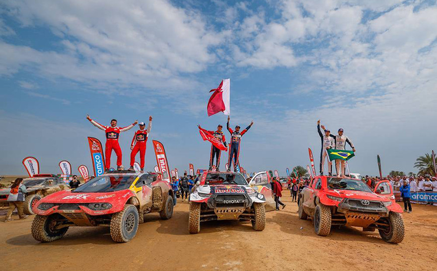 Το Ράλι Ντακάρ, η πιο σκληρή αγωνιστική δοκιμασία για οχήματα πάσης φύσεως στον πλανήτη Γη, ολοκληρώθηκε χθες στο Dammam της Σαουδικής Αραβίας με θρίαμβο του Καταριανού Ολυμπιονίκη (στη σκοποβολή) Νασέρ Αλ Ατίγια. Ο 53χρονος οδηγός επικράτησε από την αρχή του αγώνα οδηγώντας ένα Toyota GR DKR Hilux της ομάδας Gazoo racing με συνοδηγό τον Γάλλο Μάθιου Μπομέ και σημείωσε την 5η νίκη στο Dakar (σε 19 συμμετοχές), ανεβαίνοντας 2ος στο πάνθεον των νικητών του αγώνα πίσω από τον 8άκις νικητή Στεφάν Πετερανσέλ. Ο Αλ Ατίγια κυριάρχησε σε σχεδόν όλη τη διάρκεια του αγώνα, περνώντας στην 1η θέση στη 3η από τις 14 απίστευτα σκληρές ειδικές διαδρομές, κάνοντας στην συνέχεια αγώνα τακτικής, καθώς η δι