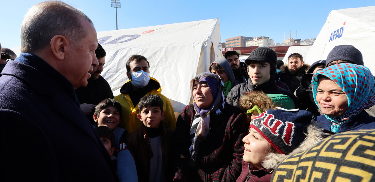 Στο Ντιγιαρμπακίρ βρέθηκε το Σάββατο ο Ρετζέπ Ταγίπ Ερντογάν, για να βρεθεί κοντά στους πληγέντες του φονικού σεισμού των 7,8 Ρίχτερ που χτύπησε Τουρκία και Συρία, αλλά και να ηρεμήσει τους αγανακτισμένους πολίτες που αποδοκιμάζουν υπουργούς και βουλευτές του. Έχοντας στο πλευρό του τη σύζυγό του, Εμινέ, που σε κάποια στιγμή πήρε στην αγκαλιά της ένα παιδί, ο Ερντογάν είπε ότι ο σεισμός της Δευτέρας είναι «τρεις φορές μεγαλύτερος και τρεις φορές πιο καταστροφικός από τον σεισμό του 1999, που είναι η μεγαλύτερη καταστροφή στη μνήμη της χώρας μας. Αυτός ο σεισμός, που περιγράφεται ως η καταστροφή του αιώνα, προκάλεσε καταστροφή σε μια περιοχή 500 χιλιομέτρων, αν και έγινε αισθητή σε μια περ