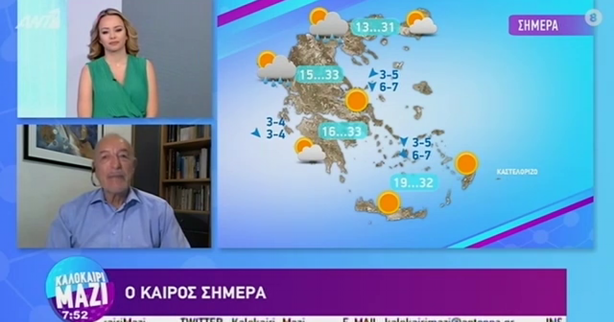 Ο Τάσος Αρνιακός παρουσιάζει τον καιρό στην εκπομπή «Καλημέρα Ελλάδα». "Έρχεται θερμή εβδομάδα",  είπε  χαρακτηριστικά. Δείτε όσα είπε για τη σημερινή ημέρα   var...