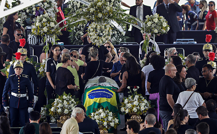 Οι Βραζιλιάνοι αποχαιρετούν τον Πελέ, αποδίδοντας φόρο τιμής στον θρύλο του ποδοσφαίρου μετά τον θάνατό του σε ηλικία 82 ετών, περνώντας μπροστά από το φέρετρό του που βρίσκεται στο κέντρο του γκαζόν του γηπέδου των μεγάλων κατορθωμάτων του «Βασιλιά» του ποδοσφαίρου, στη Σάντος. Οι πόρτες του γηπέδου Vila Belmiro, της Σάντος, άνοιξαν χθες στις 15:00 ώρα Ελλάδας για το 24ωρο λαϊκό προσκύνημα στον Πελέ. Όταν τους επέτρεψαν να μπουν, οι οπαδοί επευφημούσαν και άρχισαν να φωνάζουν «Πελέ, Πελέ, Πελέ!». Δεκάδες στεφάνια, που στάλθηκαν από προσωπικότητες του ποδοσφαίρου όπως ο σταρ της Παρί ΣΖ, Νεϊμάρ ή ξένοι σύλλογοι όπως η Ρεάλ Μαδρίτης τοποθετήθηκαν γύρω από το φέρετρο, προστατευμένα κάτω από