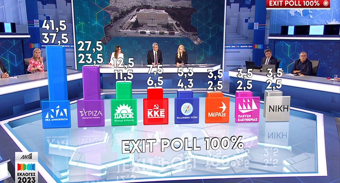 EXIT POLL 2023: Αυτό είναι το τελικό αποτέλεσμα για τις εκλογές 2023 που έδωσαν οι εταιρείες δημοσκοπήσεων για ΣΥΡΙΖΑ, ΝΕΑ ΔΗΜΟΚΡΑΤΙΑ, ΠΑΣΟΚ-ΚΙΝΑΛ και τα υπόλοιπα κόμματα.