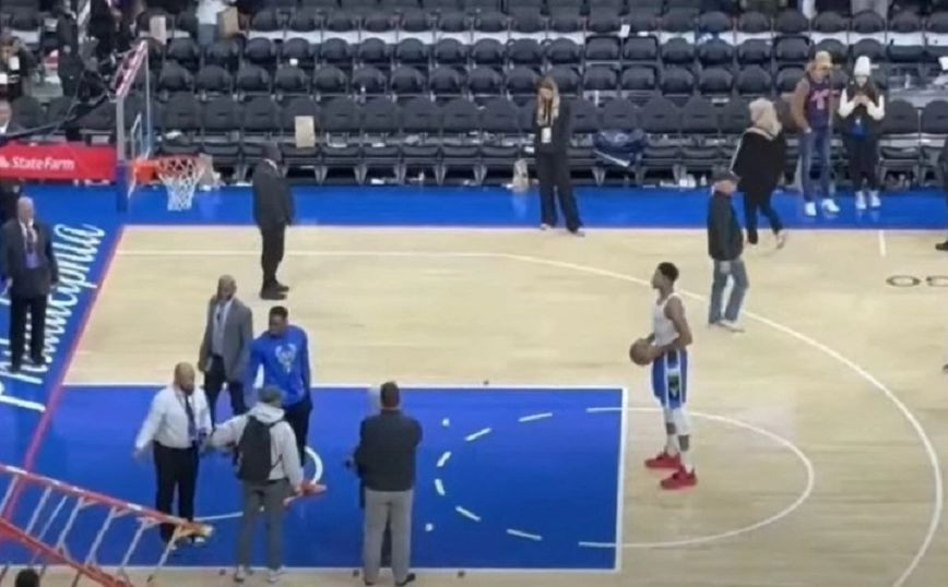 Ο 28χρονος σέντερ των Φιλαδέλφεια Σίξερς εμφανίστηκε με τον Τζόρνταν Λαβ, μέλος του τεχνικού επιτελείου της ομάδας του και πήρε την μπάλα από τα χέρια του Αντετοκούνμπο, χωρίς να του την επιστρέφει.