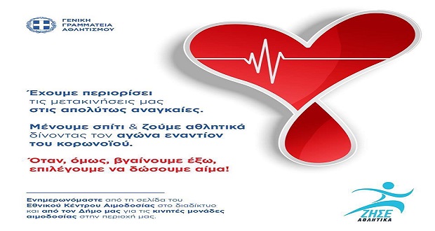 Με τη συμμετοχή του Υφυπουργού Πολιτισμού και Αθλητισμού, Λευτέρη Αυγενάκη, του γενικού γραμματέα Αθλητισμού, Γιώργου Μαυρωτά, του βουλευτή ΝΔ Ανατολικής Αττικής, Βασίλη Οικονόμου, των δημάρχων Ανδρέα Κονδύλη και Γρηγόρη Κωνσταντέλου, πλήθους Ολυμπιονικών και Πρωταθλητών (Μωραϊτίδου, Καραπατάκη, Μπισκιτζή, Καραγιάννη, Παπανικολάου, Παπαλουκά, Γλυνιαδάκη, Λεωνίδη, Μηνούδη, Δεληγιάννη κ.ά.) και αθρόα συμμετοχή πολιτών εξελίσσεται από τις 9 το πρωί η εθελοντική αιμοδοσία, για την αντιμετώπιση των αυξημένων αναγκών, λόγω της πανδημί
