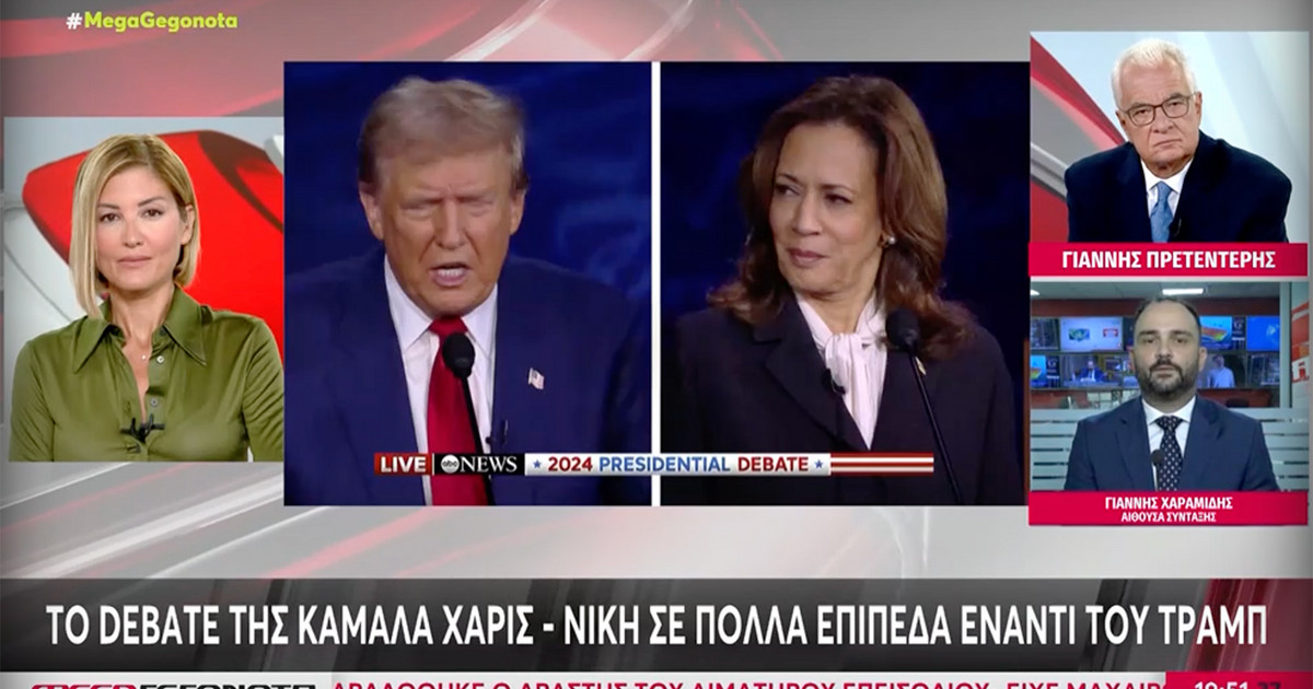 Το debate του Ντόναλντ Τραμπ και της Κάμαλα Χάρις στις ΗΠΑ σχολίασαν στο κεντρικό δελτίο ειδήσεων του Mega. Η Ράνια Τζίμα, ο Γιάννης Πρετεντέρης και ο Γιάννης Χαραμίδης ανέλυαν ποιος από τους δύο κατάφερε να κλέψει τις εντυπώσεις, με τον Γιάννη Πρετεντέρη να σχολιάζει μέχρι και το μαλλί του Τραμπ, με τρόπο που άφησε άφωνη τη Ράνια Τζίμα. «Αυτός ήταν το φαβορί και νόμιζαν ότι αυτή ήταν μία γυναικούλα, η οποία ήταν άχρωμη, άγευστη και δεν την ξέραμε 4 χρόνια σχεδόν. Ήταν στη σκιά του Μπάιντεν και θα κατέβαινε ο μεγάλος Τραμπ με το κιλοτί μαλλί. Έχει βελτιωθεί λίγο το χρώμα» είπε ο Γιάννης Πρετεντέρης με τη Ράνια Τζίνα να αναρωτιέται τι χρώμα είναι αυτό. «Αυτό το περίεργο χρώμα στο μαλλί του