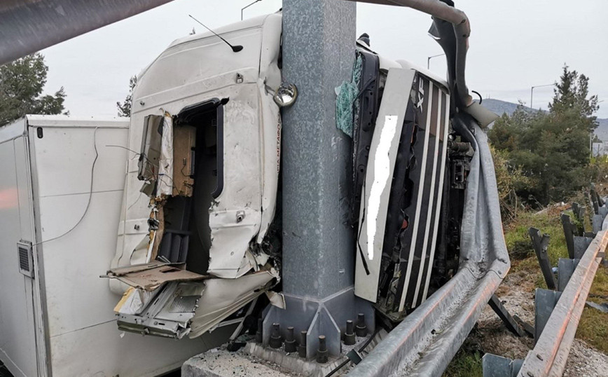 Από τη σύγκρουση «γκρεμίστηκε» προστατευτικό κάγκελο στο σημείο.
