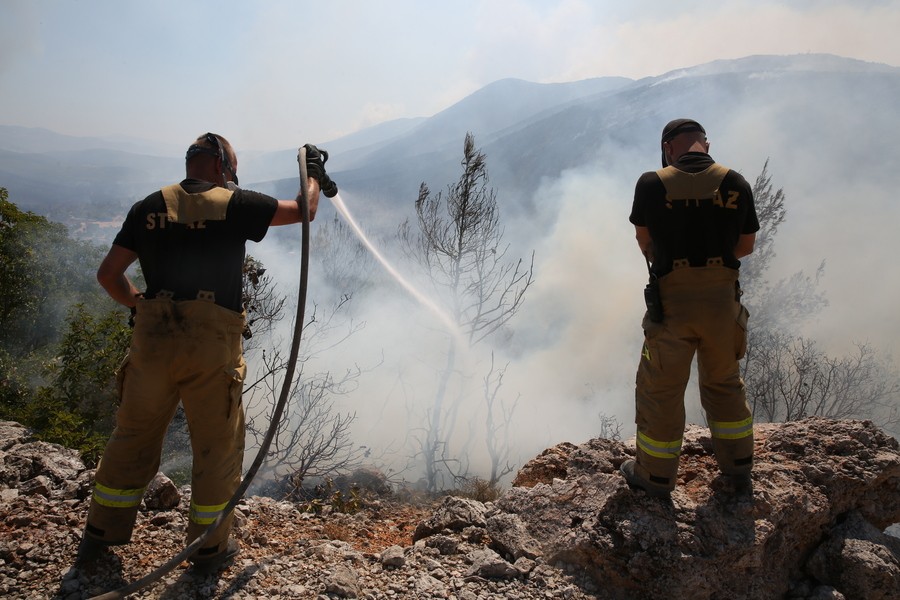 Οι προσπάθειες των πυροσβεστικών δυνάμεων, επίγειων και εναέριων, συνεχίζονται για τον έλεγχο του νοτίου μετώπου της πυρκαγιάς προς Βένιζα, Γκίνη και