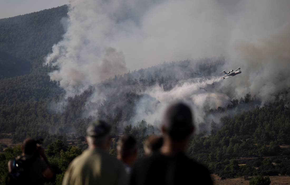 Η μεγάλη φωτιά που μαίνεται για τρίτη μέρα έφτασε στα όρια των Βιλίων, καίγοντας μάλιστα σπίτια και άλλα κτίσματα εκτός του οικισμού. Οι κάτοικοι είναι σε ετοιμότητα για εντολή εκκένωσης από την πυροσβεστική. Την ίδια στιγμή, λουόμενοι σε παραλία της Ψάθας ενώ απολαμβάνουν το μπάνιο τους, ελικόπτερα φορτώνουν νερό για την προσπάθεια κατάσβεσης.