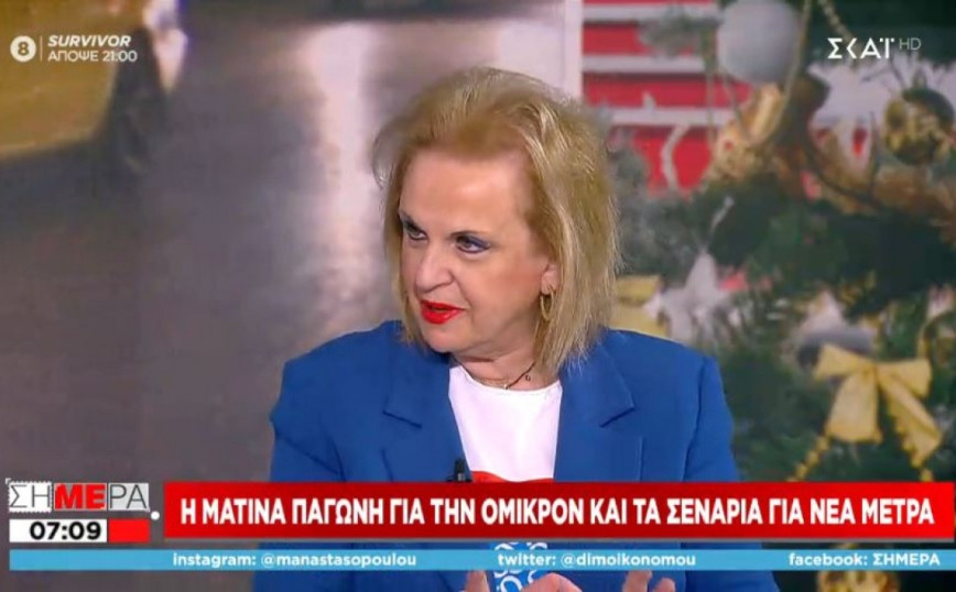 Για την πορεία του κορονοϊού στη χώρα σε συνδυασμό με την έλευση της μετάλλαξης Όμικρον μίλησε το πρωί της Δευτέρας (27/12) η πρόεδρος της ΕΙΝΑΠ Ματίνα Παγώνη, εκτιμώντας ότι «βλέπω μέτρα μετά την Πρωτοχρονιά». Μιλώντας στον ΣΚΑΪ, η κ. Παγώνη επισήμανε ότι σταδιακά θα αυξηθούν τα κρούσματα, καθώς, όπως εξήγησε, ο κόσμος θα επιστρέψει από διακοπές και τα συμβάντα θα φανούν αυτό το δεκαπενθήμερο. Παράλληλα, εκτίμησε ότι Ιανουάριος και Φεβρουάριος θα είναι οι δυο μήνες που θα έχουμε αύξηση κρουσμάτων, σημειώνοντας ότι μπορεί να δούμε πενταψήφιο αριθμό κρουσμάτων, αλλά σταδιακά. «Το 15.000 το θεωρώ υπερβολικό», πρόσθεσε. Κορονοϊός – Παγώνη: «Όποιος έχει συνάχι δεν σηκώνεται ν