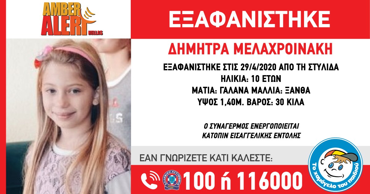 Συναγερμός έχει σημάνει στις Αρχές για την αρπαγή 4χρονου από τη μητέρα του. Τα ίχνη τους αγνοούνται από τις 4 Απριλίου και το Χαμόγελο του Παιδιού προχώρησε στην ενεργοποίηση του Amber Alert. Αναλυτικά η ανακοίνωση του Χαμόγελου του Παιδιού Στις 04/04/2020, η μητέρα του Γιαννακούλη Αχιλλέα-Αλέξη, 4 ετών, προέβη σε αυτοδικία, αρνούμενη να επιστρέψει τον ανήλικο στον πατέρα του. Υπάρχουν ενδείξεις που υποδεικνύουν ότι πιθανόν η ζωή του παιδιού βρίσκεται σε κίνδυνο. Το Χαμόγελο του Παιδιού προχώρησε στην ενεργοποίηση του Amber Alert σήμερα, 10/04/2020, κατόπιν εισαγγελικής εντολής. Ο Γιαννακούλης Αχιλλέας-Αλέξης έχει ύψος 1,20 μ., έχει βάρος 17 κιλά, έχει καστανόξανθα μαλλιά και γαλάζια μάτια.