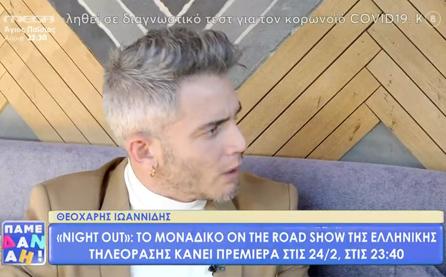 Μια ανάσα από την πρεμιέρα του «Night Out», της νέας εκπομπής την οποία θα παρουσιάζει μέσα από την συχνότητα του Mega βρίσκεται ο Θεοχάρης Ιωαννίδης. Ο ηθοποιός, παραχώρησε συνέντευξη στην εκπομπή «Πάμε Δανάη» το πρωί της Τετάρτης (23/02) και μεταξύ άλλων αποκάλυψε τον τρελό κανόνα που θα ισχύει στην εκπομπή του. «Πάντα το είχα άχτι να κάνω ένα show που είμαι εγώ, γιατί είμαι τρελάρας. Κάνουμε μια κράση ιδεών. Θέλαμε ένα night show, να είναι καθ’ οδόν, αλλά να συνδυάζει το Fear Factor, τη συνέντευξη στο τέλος, την καλοπέραση και την τρέλα. Ο κανόνας στην εκπομπή είναι ότι ό,τι challenge δεν κάνει ο καλεσμένος στην εκπομπή το κάνω εγώ!» ανέφερε αρχικά ο Θεοχάρης Ιωαννίδης. «Έτυχε να πρέπε