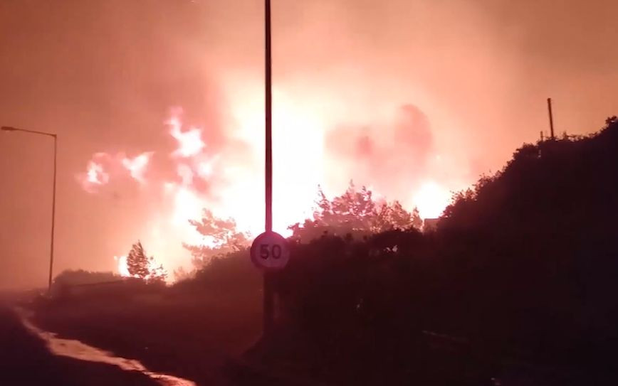 Συγκεκριμένα, μήνυμα μέσω του 112 για εκκένωση εστάλη για τους οικισμούς σε Λίνδο, Πεύκους και Κάλαθο προς Αρχάγγελο και στη συνέχεια για τις πε
