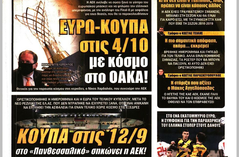 Διαβάστε τι γράφουν οι εφημερίδες σήμερα (05/09). SportDay “Ποντάρει στον κορμό” γράφει η εφημερίδα, τονίζοντας ότι το “όπλο” της ΑΕΚ για να κάνει καλύτερο ξεκίνημα θα είναι ο κορμός της ομάδας. Επίσης, αναφέρει ότι περιμένουν πρόταση για τον Βέρντε, αλλά και το μήνυμα της Άντερλεχτ για Βράνιες. Live Sport “Ο Βέρντε φέρνει εξτρέμ” γράφει η […]