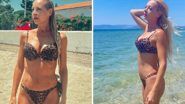 Η Φαίη Ξυλά ποζάρει με λεοπάρ μπικίνι στην παραλία