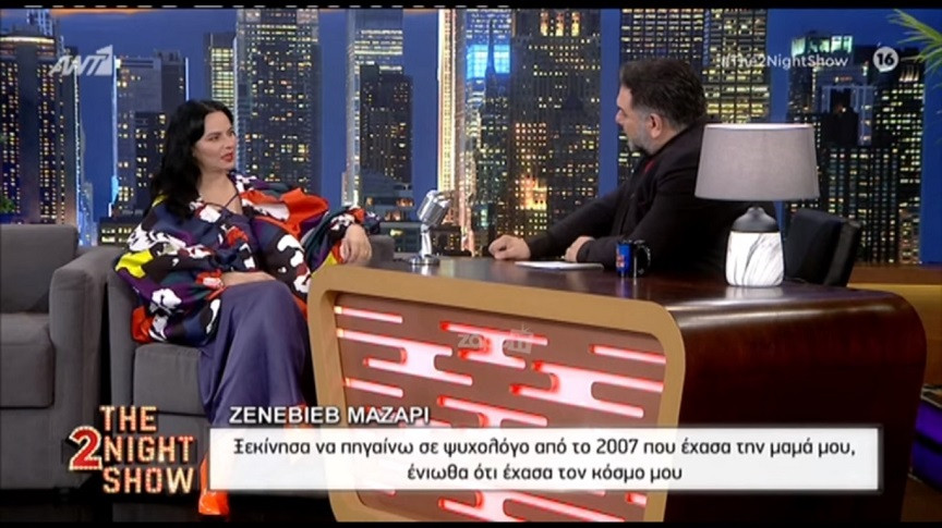 O Γρηγόρης Αρναούτογλου υποδέχτηκε στο «The 2Night Show» της Τετάρτης (23/3) τη Ζενεβιέβ Μαζαρί. Η εντυπωσιακή Art & Creative Director, που άφησε το δικό της στίγμα στο «GNTM», με την έντονη προσωπικότητα και τη σκληρή της κριτική, «ξεδίπλωσε» τη δική της ανατρεπτική ζωή με αφοπλιστική ειλικρίνεια. Θυμήθηκε τα εφηβικά της χρόνια, το «μικρόβιο» της μόδας που είχε από μικρή, τις άστοχες αλλαγές που έκανε στην εμφάνισή της, ως «fashion victim», την απώλεια της μητέρας της που την οδήγησε σε ψυχολόγο, και την «απειλή» της κατάθλιψης που έμαθε να αντιμετωπίζει. «Ήμουν τεράστιο fashion victim. Δεν μου πήγαιναν τα λεπτά φρύδια και τα ξανθά μαλλιά. Μπλε μαλλιά έχει τώρα η κόρη μου. Τώρα πια δ