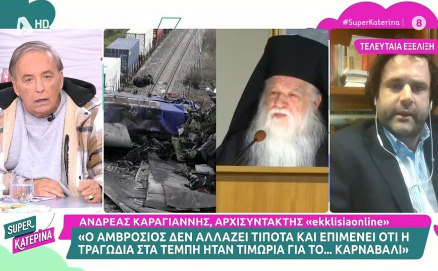 Αντιδράσεις συνεχίζουν να προκαλούν οι δηλώσεις του πατέρα Αμβρόσιου. Μετά την πρώτη άστοχη τοποθέτησή του, πως η σύγκρουση των δύο τρένων στα Τέμπη ήταν τιμωρία του Θεού, εξαιτίας του καρναβαλιού, ο πατέρας Αμβρόσιος απάντησε σε όσους τον κατέκριναν, μένοντας αμετακίνητος στις απόψεις του. «Εδώ δεν ξέρουν το “Πάτερ Ημών”. Πώς να ερμηνεύσουν ένα θεολογικό κείμενο χιλιάδων λέξεων; Μην έχουμε παράλογες απαιτήσεις», ανέφερε ο πατέρας Αμβρόσιος, για όλους εκείνους που έσπευσαν να κατακρίνουν τις δηλώσεις του. Σήμερα, στην εκπομπή «Super Κατερίνα» με την Κατερίνα Καινούργιου, ξεσηκώθηκε νέα θύελλα αντιδράσεων από την παρουσιάστρια αλλά και την ομάδα της, καθώς ανέφεραν πως ο πατέρα