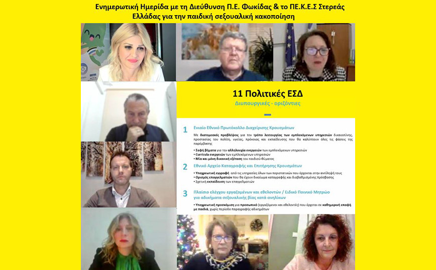 Η Έλενα Ράπτη, βουλευτής Α’ Θεσσαλονίκης, μίλησε στη διαδικτυακή επιμορφωτική ημερίδα, με θέμα «Πρόληψη της παιδικής σεξουαλικής κακοποίησης», που διοργανώθηκε από τη Διεύθυνση Π.Ε. Φωκίδας σε συνεργασία με το ΠΕ.ΚΕ.Σ. Στερεάς Ελλάδας, στο πλαίσιο της διαρκούς επιστημονικής – παιδαγωγικής ενημέρωσης και υποστήριξης των εκπαιδευτικών, αλλά και της διάχυσης υπεύθυνης πληροφόρησης σχετικής με την αγωγή και εκπαίδευση των παιδιών στο ευρύ κοινό. Την εκδήλωση παρακολούθησαν εκπαιδευτικοί της Πρωτοβάθμιας Εκπαίδευσης από όλη την Ελλάδα και ενδιαφερόμενοι γονείς. Ως συντονίστρια του προγράμματος «Ένα στα Πέντε» του Συμβουλίου της Ευρώπης, μίλησε για τον κανόνα του εσώρουχου παρουσιάζοντας