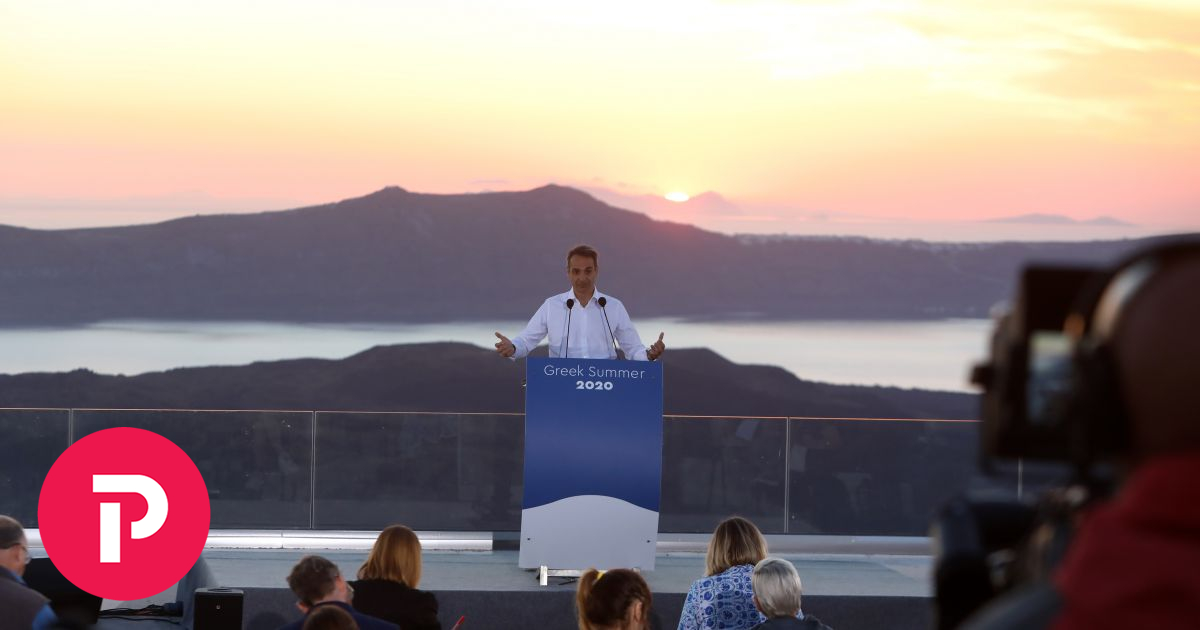 Σε ένα προσεκτικά επιλεγμένο από το επιτελείο της ΝΔ κινηματογραφικό σκηνικό με φόντο το ειδυλλιακό ηλιοβασίλεμα και θέα το ηφαίστειο και τη Θηρασιά ο πρωθυπουργός, Κυριάκος Μητσοτάκης, άνοιξε την πόρτα στο ελληνικό καλοκαίρι, δίνοντας συνέντευξη στους ανταποκριτές ξένου Τύπου από τη Σαντορίνη, έναν εμβληματικό προορισμό για τον παγκόσμιο τουρισμό.