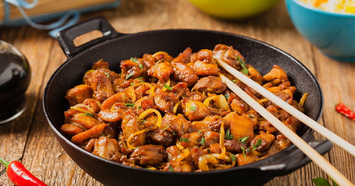 Υλικά 1 κιλό φιλέτο μπούτι κοτόπουλο χωρίς δέρμα, κομμένο σε μεγάλα κομμάτια 3 κ. σ. ελαιόλαδο 1/3 φλ. τσαγιού τζίντζερ, ψιλοκομμένο 3 κ. σ. σάλτσα ψαριού 1 τσίλι, χωρίς σπόρους, ψιλοκομμένο (προαιρετικά) 1/4 φλ. τσαγιού καστανή ζάχαρη 2 κρεμμύδια, σε λεπτές φέτες 1/2 φλ. τσαγιού βραστό νερό Εκτέλεση Ανακατέψτε το κοτόπουλο με τη σάλτσα ψαριού και το τσίλι και αφήστε το στην άκρη, ενώ ετοιμάζετε τα υπόλοιπα υλικά. Μπορείτε να το μαρινάρετε ακόμα και όλη τη νύχτα, αλλά δεν είναι απαραίτητο. Χρησιμοποιήστε ένα μεγάλο αντικολλητικό τηγάνι. Ανακατέψτε το λάδι και τη ζάχαρη στο κρύο τηγάνι και, στη συνέχεια, γυρίστε το σε μέτρια- δυνατή φωτιά. Μόλις λιώσει η ζάχαρη, απομακρύνετε το τηγάνι από