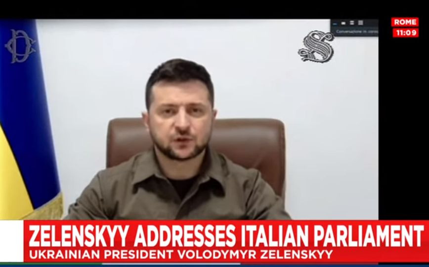 Μια ακόμη δραματική ομιλία από τον πρόεδρο της Ουκρανίας, Βολοντίμιρ Ζελένσκι, ο οποίος μίλησε σε απευθείας σύνδεση με την ολομέλεια του ιταλικού κοινοβουλίου. «Ο λαός μου μετετράπη σε στρατό, είδε τις καταστροφές και το αίμα που χύθηκε εξαιτίας του εχθρού», τόνισε. «Πριν από μια εβδομάδα είχα πει ότι είχαν σκοτωθεί 79 παιδιά. Τώρα είναι 117, και δεν είναι ο τελικός απολογισμός. Δεκάδες χιλιάδες οικογένειες καταστράφηκαν, όπως και εκατομμύρια σπίτια. Ο λαός μου θάβει τους νεκρούς του στα πάρκα, σε ομαδικούς τάφους», πρόσθεσε ο Ζελένσκι. Τόνισε ακόμη ότι η Μαριούπολη, η οποία καταστράφηκε ολοσχερώς, αριθμούσε 500.000 κατοίκους, όπως η ιταλική πόλη της Γένοβας. «Χρειαζόμαστε ειρήνη, αλλά βλ