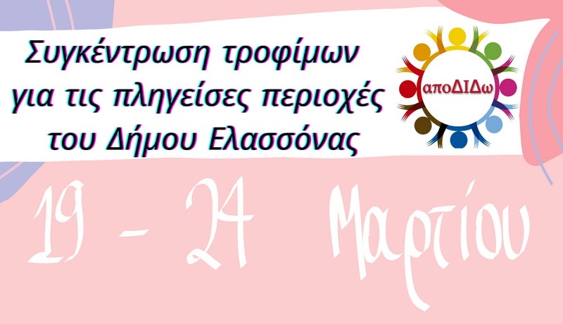 Η Εθελοντική ομάδα Διδυμοτείχου "αποΔΙΔω", με αίσθημα αλληλεγγύης, συγκεντρώνει τρόφιμα και είδη πρώτης ανάγκης για τους σεισμόπληκτους της Ελασσόνας και των γύρω περιοχών. Τα αγαθά συγκεντρώνονται στο ισόγειο του Δημαρχείου Διδυμοτείχου, από την Παρασκευή 19 έως την Τετάρτη 24 Μαρτίου 2021, ώρες 7:00 - 15:00.Προτεινόμενα αγαθά: κονσέρβες, μπισκότα, κρουασάν, κριτσίνια, πελτές τομάτας, ατομικοί χυμοί, γάλα μακράς διάρκειας, χαρτί υγείας, αντισηπτικά, μάσκες, μωρομάντηλα, χαρτικά και είδη μιας χρήσης. Προσοχή: Δεν χρειάζονται είδη ρουχισμού.Η εθελοντική ομάδα Διδυμοτείχου "αποΔΙΔω" ευχαριστεί θερμά το τοπικό κατάστημα της Speedex Διδυμοτείχου για την δωρεάν μεταφορά των αγαθών. (adsbygoogle