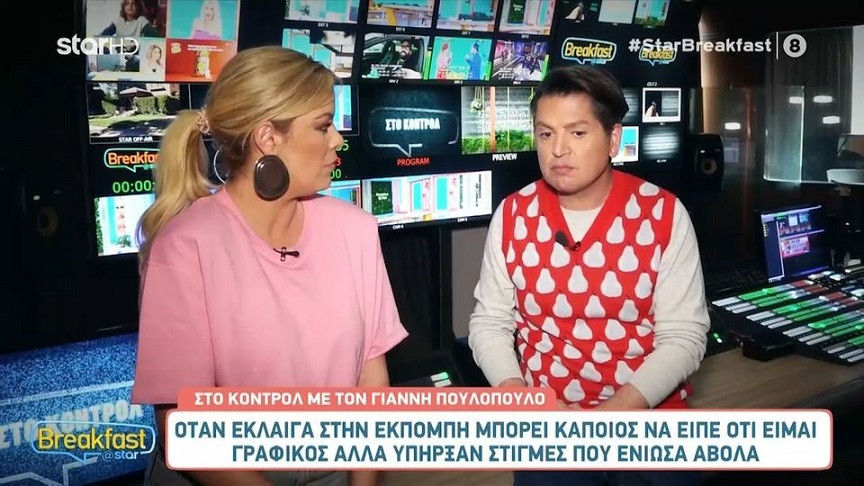 Για το τηλεοπτικό του μέλλον, τις προτάσεις που έχει δεχτεί, τον Γρηγόρη Αρναούτογλου, αλλά και τον σύντροφό του, με τον οποίο έχουν διαγράψει μέχρι στιγμής 13 χρόνια κοινής πορείας, μίλησε τη Μεγάλη Δευτέρα (10/4) στην κάμερα του Breakfast@Star ο Γιάννης Πουλόπουλος. «Αγαπώ την Κατερίνα Καινούργιου, αλλά ο σύντροφος και η επιχείρησή μας βρίσκεται στη Μύκονο. Η ευτυχία δεν κόβεται στα τρία, αλλά ίσως υπάρχει κι άλλος δρόμος», ήταν η αινιγματική του απάντηση σχετικά με το αν θα τον δούμε και του χρόνου στην εκπομπή «Super Κατερίνα». «Στην αρχή η Κατερίνα Καινούργιου δε με ήθελε στην εκπομπή της, δεν είχε δει την εξέλιξή μου», είπε στη συνέχεια. «Έχω δεχτεί προτάσεις και από κανάλια που δεν