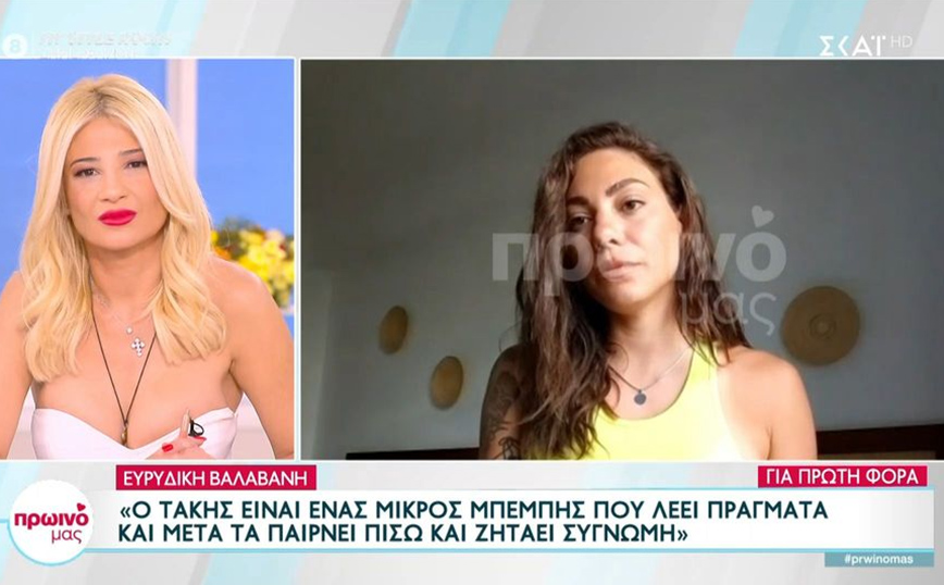 Τις πρώτες της δηλώσεις επί ελληνικού εδάφους έκανε η Ευρυδίκη Βαλαβάνη στην κάμερα της εκπομπή τους ΣΚΑΪ «Γεια σου», μετά την αποχώρησή της από το Survivor All Star. «Δεν έφαγα τίποτα στην πτήση της επιστροφής, έχει κλείσει το στομάχι μου. Το πρώτο πρόσωπο που πήρα τηλέφωνο μόλις μού έδωσαν το κινητό μου ήταν η αδερφή μου. Σοκαρίστηκα όταν άκουσα ότι αποχωρώ. Δεν ξέρω τι συνέβη, δεν ήταν η ώρα μου να φύγω, στο αεροπλάνο μού έλεγαν ότι είναι άδικο. Δεν ένιωθα ότι είμαι στο Survivor, ήταν σαν να το βλέπω απ’ έξω, έλεγα στον εαυτό μου “τι κάνεις εδώ;”», είπε αρχικά και συνέχισε: «Ο Κωνσταντίνος είναι αρκετά δυνατός, πιστεύω ότι θα κερδίσει, τον στηρίζω. Ο Τριαντάφυλλος είναι ένα παιδάκι, λέ