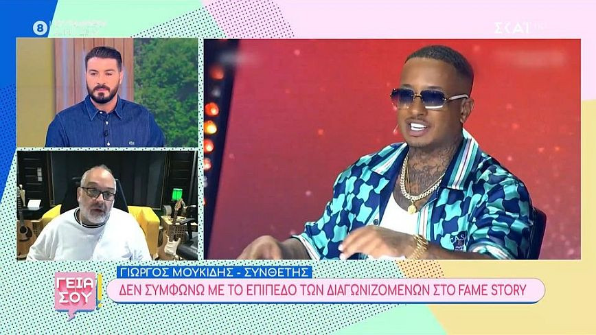 Την προσωπική του άποψη εξέφρασε ο Γιώργος Μουκίδης για την τηλεοπτική επιστροφή του Fame Story στον αέρα της εκπομπής «Γεια σου» την Κυριακή στον ΣΚΑΪ. Μάλιστα, ο δημοφιλής συνθέτης εστίασε τόσο στο επίπεδο των διαγωνιζομένων όσο και στην επιλογή να βρίσκεται ο Light σε ρόλο κριτή στο μουσικό σόου. Ειδικότερα, έχοντας περάσει και ο ίδιος στο παρελθόν από το Fame Story, ο Γιώργος Μουκίδης δήλωσε πως «δεν συμφωνώ με το επίπεδο των διαγωνιζομένων στο Fame Story γιατί, από αυτούς που εγώ είδα, ξεχώρισα μόνο δύο άτομα. Υπάρχον Υπάρχουν παιδιά στη χώρα, άμα ψάξουμε κανονικά την χώρα έχει πάρα πολλά ταλέντα. Εγώ που συναναστρέφομαι με καινούργιους τραγουδιστές μπορώ να πω 30 άτομα που είναι εξ