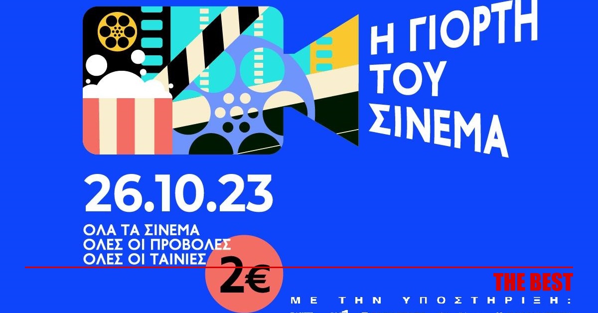 Σήμερα, Πέμπτη 26 Οκτωβρίου, είναι η Γιορτή του Σινεμά. Στην χώρα μας γιορτάζεται για δεύτερη χρονιά και για μία μόνο ημέρα, ενώ σε όλες τις αίθουσες πανελλαδικά οι ταινίες θα έχουν εισιτήριο μόλις 2 ευρώ. Η ενέργεια αυτή διοργανώνεται από τους διανομείς κινηματογραφικών ταινιών και έχει την υποστήριξη των επιχειρήσεων των κινηματογραφικών αιθουσών πανελλαδικά. Σημειώνεται ότι η πρώτη Γιορτή του Σινεμά πραγματοποιήθηκε στις 27 Οκτωβρίου 2022, παραμονή της αργίας της 28ης Οκτωβρίου, όπου συνολικά κόπηκαν 110.934 εισιτήρια. Πάρτε τους Δημήτρηδες, τις Δήμητρες, τους φίλους, τους γονείς ή και τους συναδέλφους σας και γιορτάστε το σινεμά στον φυσικό του χώρο, αυτόν της μεγάλης οθόνης.