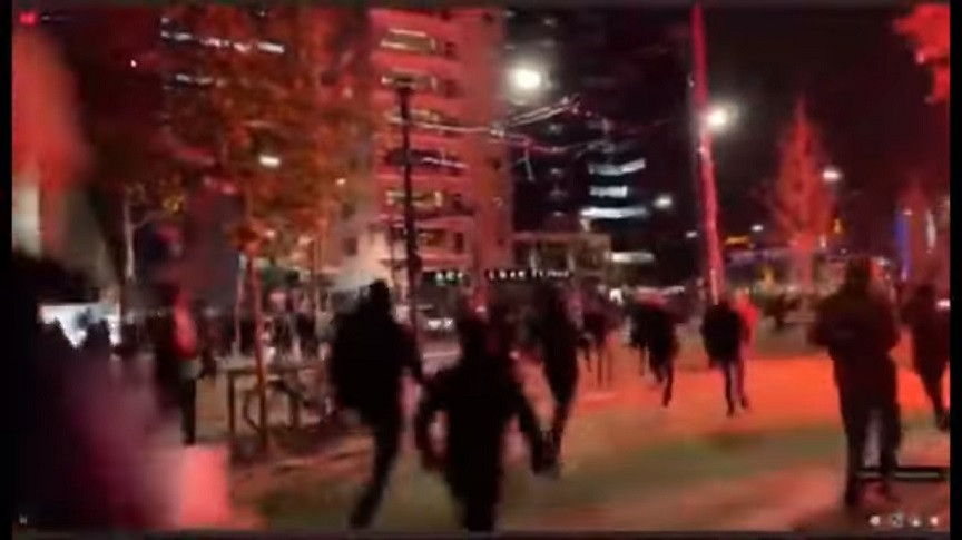 Η μεγάλη κεντρική πλατεία της πρωτεύουσας, στην οποία ηχούσαν από τα μεγάφωνα πατριωτικά τραγούδια, γέμισε κόκκινο και λευκό καπνό, τα εθνικά χρώματα, ενώ από την αρχή της πορείας εκτοξεύονταν πυροτεχνήματα και άλλα καπνογόνα.