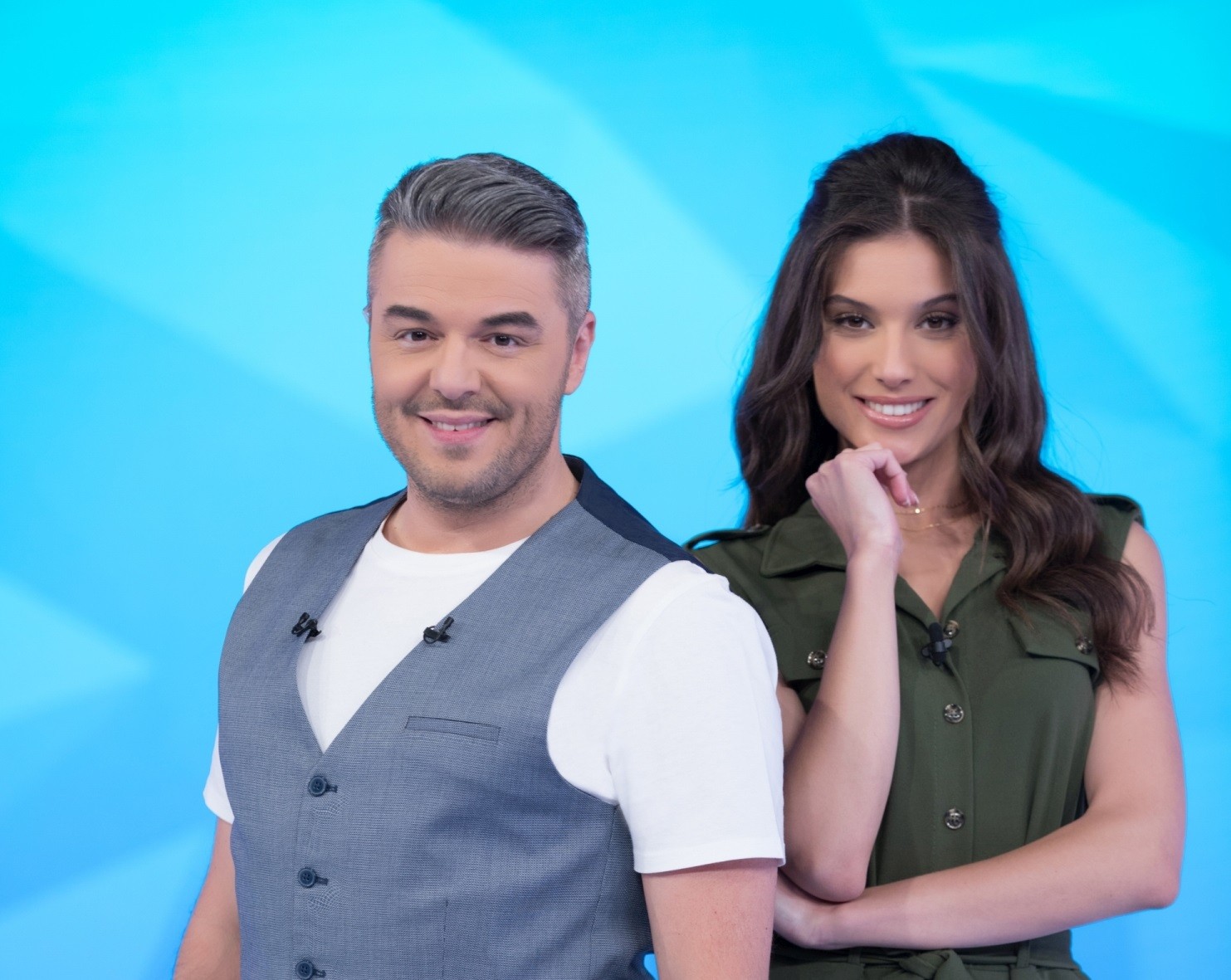 Ο Πέτρος Πολυχρονίδης αποχαιρετά τη Βάλια Χατζηθεοδώρου που φεύγει από τον «Τροχό της Τύχης»