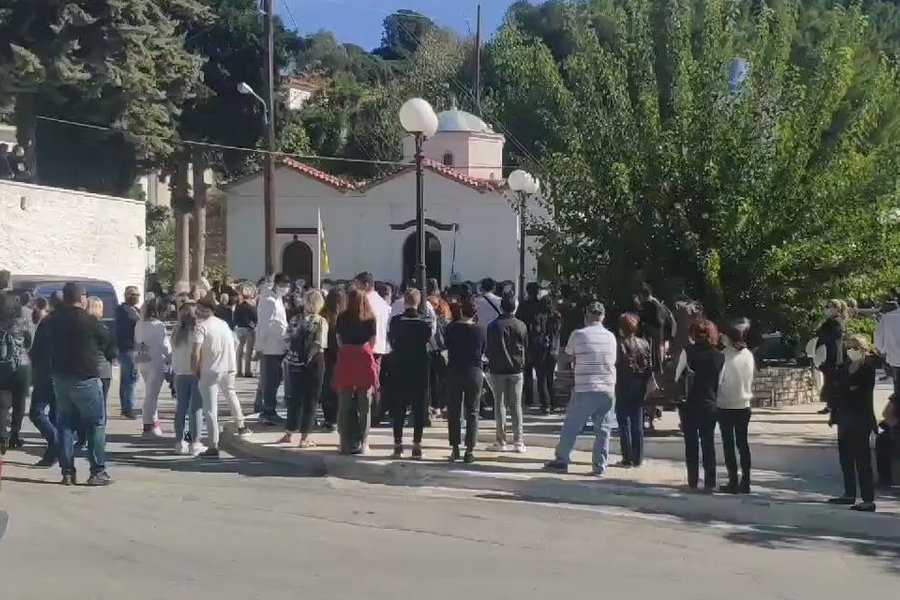 Συγγενείς, φίλοι, συμμαθητές, γονείς και καθηγητές συγκεντρώθηκαν σήμερα το μεσημέρι στον ιερό ναού του Αγίου Χαράλαμπου στο Βαθύ της Σάμου για να αποχαιρετήσουν την Κλαίρη, που έχασε τόσο άδικα τη ζωή της μαζί με τον Άρη κατά τη διάρκεια του σεισμού.