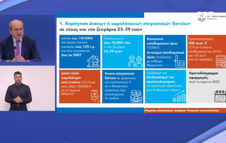 Στεγαστικά δάνεια έως 150.000 ευρώ σε 10.000 νέους με μηνιαία δόση 275 ευρώ