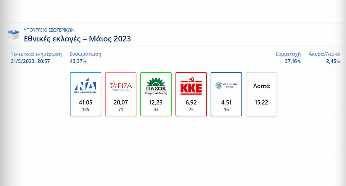 The post EXIT POLL 2023 Τελικό για αποτελέσματα εκλογών για ΝΔ, ΣΥΡΙΖΑ, ΠΑΣΟΚ appeared first on Militaire.gr.