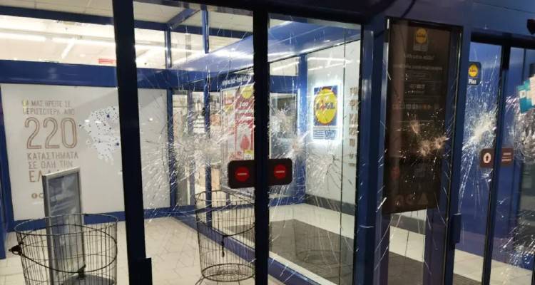 Επίθεση Ρουβίκωνα στα Lidl στο Ίλιον μετά το σάλο με τη μήνυση σε ηλικιωμένη – Έσπασαν με βαριοπούλες την είσοδο