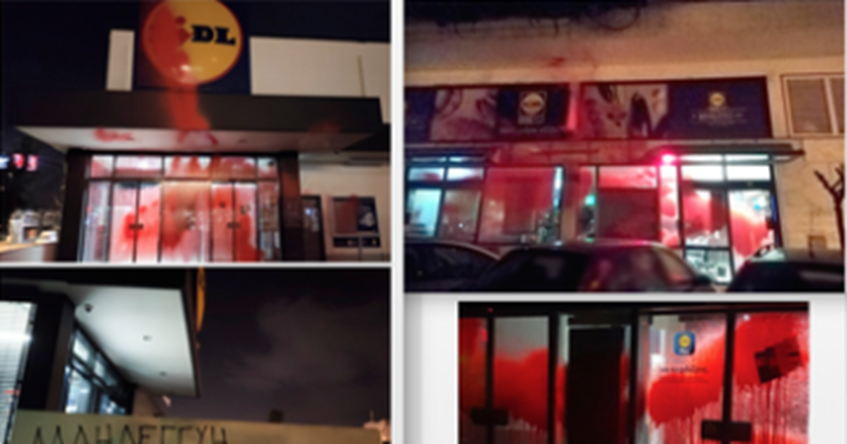 Επιθέσεις με μπογιές και παρέμβαση με τρικάκια πραγματοποίησαν μέλη του «Ρουβίκωνα» σε σειρά υποκαταστημάτων της αλυσίδας σούπερ μάρκετ Lidl.