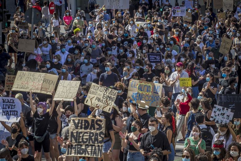Χιλιάδες Ισπανοί διαδήλωσαν την Κυριακή στη Μαδρίτη και τη Βαρκελώνη κατά του ρατσισμού, με αφορμή τον θάνατο του 46χρονου Αφροαμερικανού Τζορτζ Φλόιντ στη Μινεάπολη των ΗΠΑ, πριν από δύο εβδομάδες.
