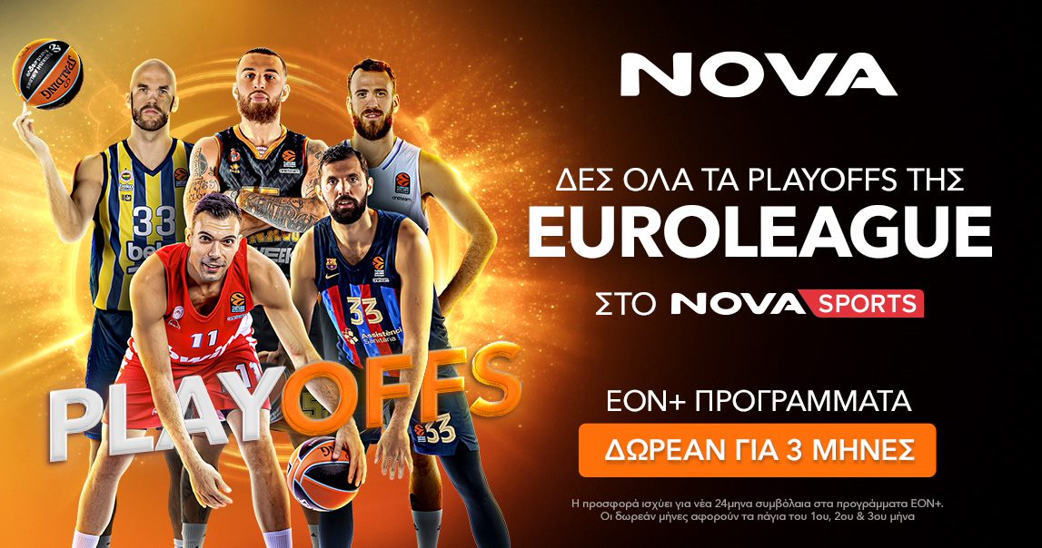 Συναρπαστικές ποδοσφαιρικές αναμετρήσεις με τα ντέρμπι ΠΑΟΚ – Παναθηναϊκός, Μπαρτσελόνα – Ατλέτικο Μαδρίτης, Λιόν – Μαρσέιγ, Αϊντχόφεν – Άγιαξ αλλά και πλούσιο μπάσκετικό θέαμα με τους αγώνες της προημιτελικής φάσης του EuroCup περιμένει αυτή την εβδομάδα τους συνδρομητές Novasports! Η Stoiximan Super League επιστρέφει στην αγωνιστική δράση με τα Playoffs και το ντέρμπι της 5ης αγωνιστικής ΠΑΟΚ – Παναθηναϊκός, αλλά και με τα Playouts και οι συνδρομητές θα δουν τις αναμετρήσεις Λεβαδειακός – Ιωνικός και ΠΑΣ Γιάννινα-Παναιτωλικός. Οι αγώνες θα πλαισιωθούν από τις αγαπημένες εκπομπές των φιλάθλων, «Η Ώρα των Πρωταθλητών» με τη Λίλα Κουντουριώτη και Γιαννίκο Δούσκα, καθώς και «Monday Football