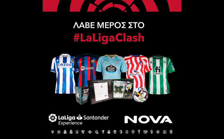 Η Nova, μέλος της United Group, του κορυφαίου παρόχου τηλεπικοινωνιών και media στη Νοτιοανατολική Ευρώπη και η LaLiga, το ισπανικό πρωτάθλημα ποδοσφαίρου που απολαμβάνουν οι φίλαθλοι αποκλειστικά στο «γήπεδο» του Novasports, δίνουν την ευκαιρία στους συνδρομητές Nova να ζήσουν μια μοναδική εμπειρία μέσα από μία σειρά 5 διαγωνισμών, LaLiga Clash που θα ξεκινήσει στις 6 Φεβρουαρίου και θα ολοκληρωθεί τον Μάρτιο. O διαγωνισμός LaLiga Clash δίνει τη δυνατότητα σε όλους όσοι είναι συνδρομητές Nova, να κερδίσουν μοναδικά αναμνηστικά δώρα της LaLiga Santander, μεταξύ άλλων και φανέλα της ομάδας που θα επιλέξουν οι νικητές. Τα δώρα όμως δεν σταματούν εδώ, καθώς όσοι συμμετέχουν και κερδίσουν σε