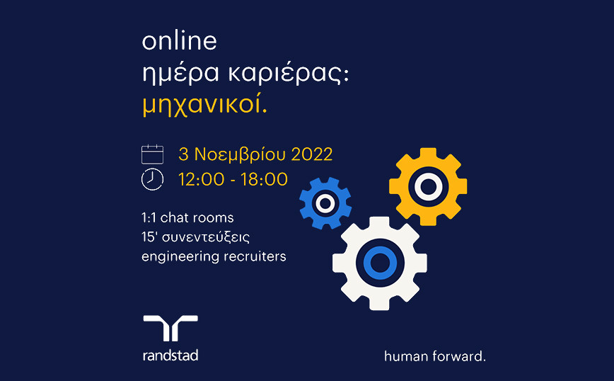 Η Randstad, ο παγκόσμιος ηγέτης στον κλάδο των υπηρεσιών Ανθρώπινου Δυναμικού, διοργανώνει virtual career day event για μηχανικούς, για θέσεις εργασίας που αφορούν μεταξύ άλλων τον τομέα των Ανανεώσιμων Πηγών Ενέργειας, της Βιομηχανίας και του Κατασκευαστικού κλάδου. Την Πέμπτη 3 Νοεμβρίου, από τις 12:00 έως τις 18:00, οι εξειδικευμένοι σύμβουλοι της Randstad θα καθοδηγήσουν νέους υποψήφιους, που αναζητούν ευκαιρίες καριέρας ως μηχανικοί, στον κόσμο της εργασίας. Οι συμμετέχοντες, που αναζητούν το επόμενο επαγγελματικό τους βήμα, θα έχουν τη δυνατότητα να συμμετάσχουν σε online 1:1 συνεντεύξεις και να εξερευνήσουν διαφορετικές θέσεις εργασίας από μεγάλες ελληνικές και πολυεθνικές ετ