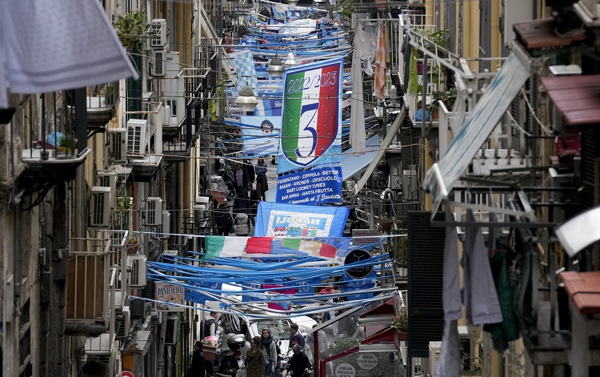 Στη Νάπολη, μια… κηδεία διέκοψε για λίγο το εορταστικό κλίμα που επικρατεί στην πόλη καθώς οι κάτοικοί της, στην πλειονότητά τους οπαδοί της Νάπολι, περιμένουν να πανηγυρίσουν την Κυριακή (30/4) την κατάκτηση του πρωταθλήματος της Serie A, του πρώτου από την εποχή του Ντιέγκο Μαραντόνα. Έτσι, οι οπαδοί των «παρτενοπέι» προχώρησαν σε μια ιδιαίτερη τελετή. «Κήδευσαν» τους ανταγωνιστές της ομάδας τους. Τοποθέτησαν σε νεκροταφείο σταυρούς με τα σήματα των ομάδων και τοποθέτησαν ένα φέρετρο, το οποίο είχε πάνω κασκόλ των Γιουβέντους, Ίντερ, Μίλαν και Τορίνο. Πίσω από τον τάφο, έχει κρεμαστεί και ένα πανό που γράφει: «Για ολόκληρη την Ιταλία ένας φρικτός πόνος. Μετά από τόσα χρόνια σας βά