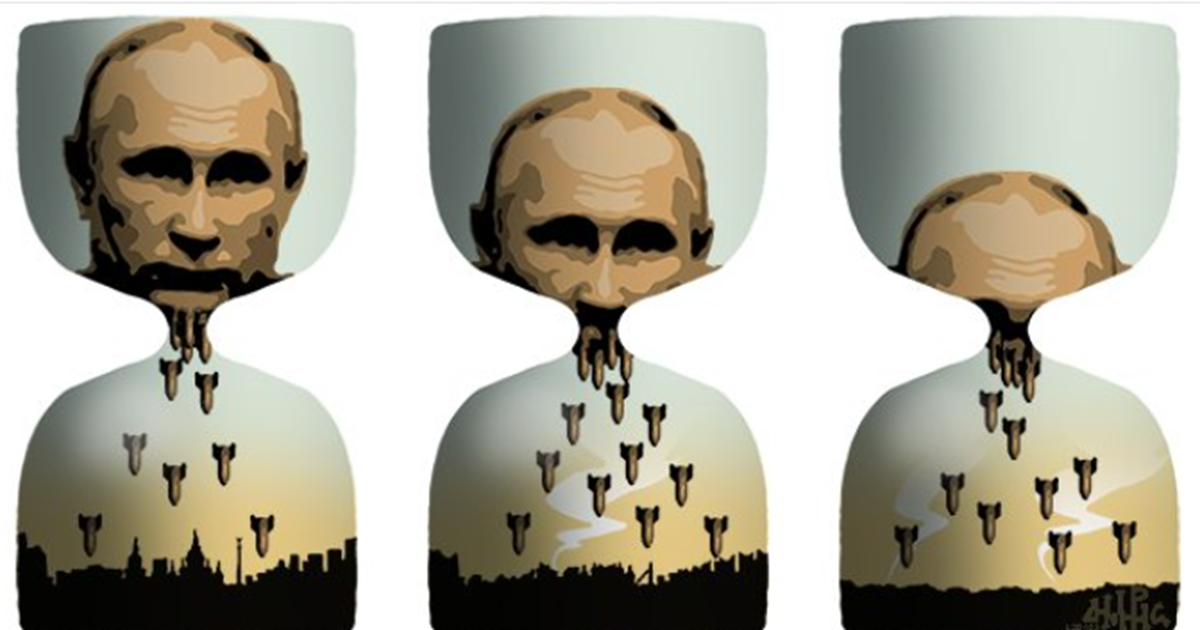 Το εξαιρετικό σκίτσο του Χαντζόπουλου για τον Πούτιν- Οσο πέφτουν οι βόμβες στην Ουκρανία, τόσο αυτός…