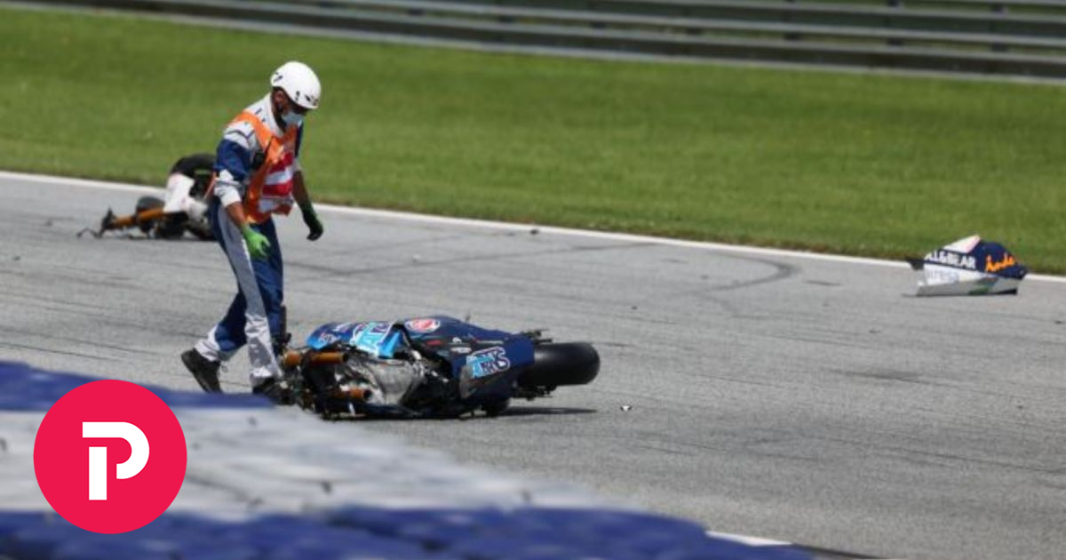 Ο Hafizh Syahrin δεν κατάφερε να αποφύγει τη μηχανή του Bastianini, με αποτέλεσμα και οι δύο να γίνουν κομμάτια. Ο Μαλαισιανός εκσφενδονίστηκε αρκετά μέτρα από το σημαίο της σύγκρουσης, χωρίς όμως να πάθει κάτι. Όπως ενημέρωσε επίσημα η σελίδα του MotoGP, είναι καλά