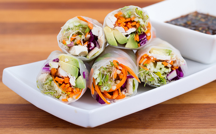 Υλικά 2 αβοκάντο, κομμένα σε κύβους Χυμό από 1 λάιμ 2 φλ. τσαγιού κοτόπουλο τεμαχισμένο 1 πιπεριά, χωρίς σπόρους ψιλοκομμένη 1/2 μικρό κόκκινο κρεμμύδι, ψιλοκομμένο 1/2 φλ. τσαγιού τεμαχισμένο κίτρινο τυρί 1/2 φλ. τσαγιού τεμαχισμένο τσένταρ 2 κ. σ. ξινή κρέμα 2 κ. σ. ψιλοκομμένο σχοινόπρασο 4 μεγάλες τορτίγιες Εκτέλεση Σε ένα μεσαίο μπολ, ανακατέψτε το αβοκάντο και το χυμό λάιμ και πολτοποιήστε το μέχρι να μείνουν μόνο μικρά κομμάτια αβοκάντο. Προσθέστε το κοτόπουλο, την πιπεριά, το κόκκινο κρεμμύδι, το κίτρινο τυρί, το τσένταρ, την ξινή κρέμα και το σχοινόπρασο και ανακατέψτε μέχρι να ομογενοποιηθούν. Απλώστε ένα λεπτό στρώμα από το μείγμα κοτόπουλου-αβοκάντο σε μια μεγάλη τορτίγια, αφή